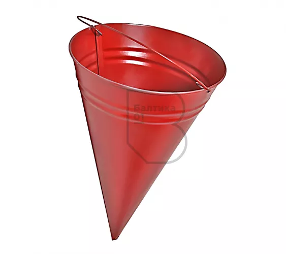 Ведро пожарное конусное – первичное средство пожаротушения, предназначено для доставки песка и воды к очагу возгорания. Ведро пожарное изготовлено из тонколистовой стали, имеет один сварной шов, что препятствует его деформации при падении. Имеет влаго-морозостойкое порошковое покрытие. Цвет - красный.