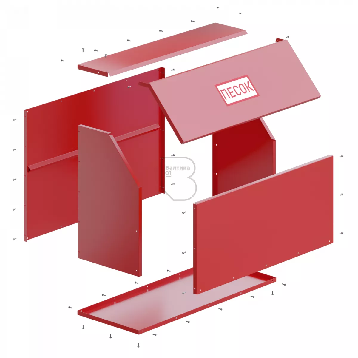 Ящик для песка 0,5 м3 сборно-разборный - предназначен для хранения пожарного песка, используемого для ликвидации возгораний и в тех местах, где существует угроза разлива легковоспламеняющихся и горючих жидкостей. Ящики применяются на автозаправочных станциях, различных предприятиях и складах.